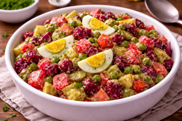 Обычный винегрет иногда просто надоедает, и хочется чего-то чуть более мягкого и насыщенного по вкусу. Я начала добавлять яйца и делать заправку из авокадо — и салат заиграл по-другому. Все те же привычные продукты, но текстура стала нежнее, а вкус — более собранным.