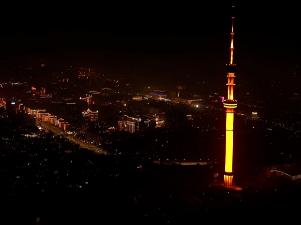 Телебашня Коктобе и другие знаковые объекты Алматы окрасились в оранжевый цвет, передает Liter.kz.