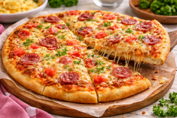 Когда нет времени на тесто и долгую возню, этот рецепт спасает на раз-два. Смешали, залили, выложили начинку — и уже через 15-10 минут на столе румяная, сочная пицца с тянущимся сыром. Продукты самые простые, а результат — как из хорошей пекарни. Нежная основа, ароматная колбаска, сочные помидоры и золотистая корочка — идеальный вариант для ужина, перекуса и неожиданных гостей.