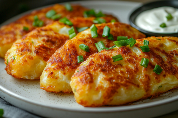 Формирую зразы: беру порцию картофельного теста, скатываю в шарик и делаю лепешку. В центр кладу начинку и аккуратно защипываю края, формируя аккуратную котлетку. Разогреваю на сковороде 2 ст. ложки растительного масла и обжариваю зразы на среднем огне до золотистой хрустящей корочки с обеих сторон.